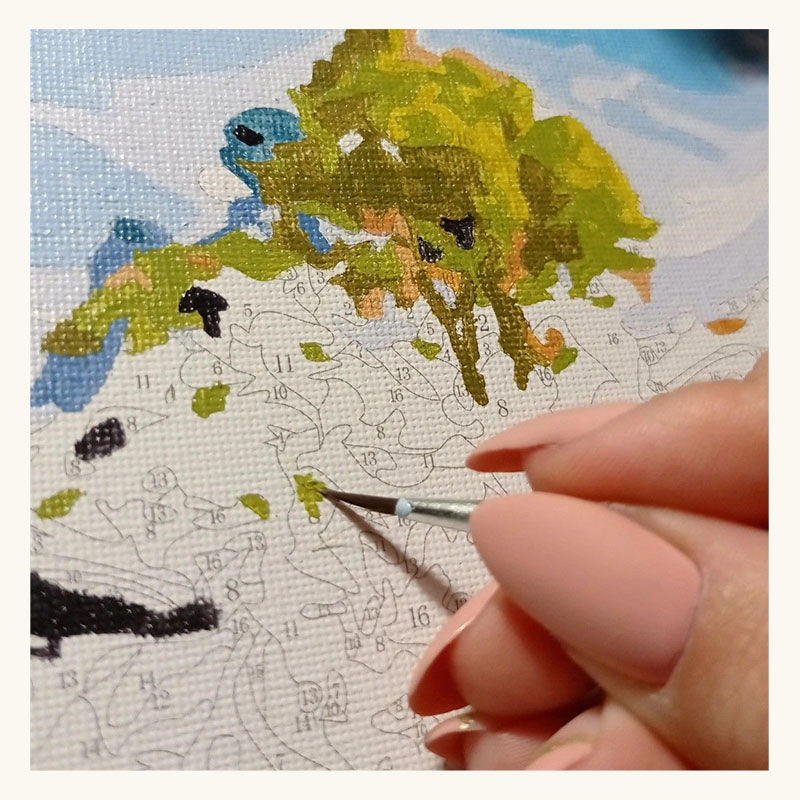 Our kits come with high-quality, fast-drying acrylic paints, perfect for the Paint by Numbers technique. You'll enjoy vibrant colors that dry quickly for a seamless painting experience.
